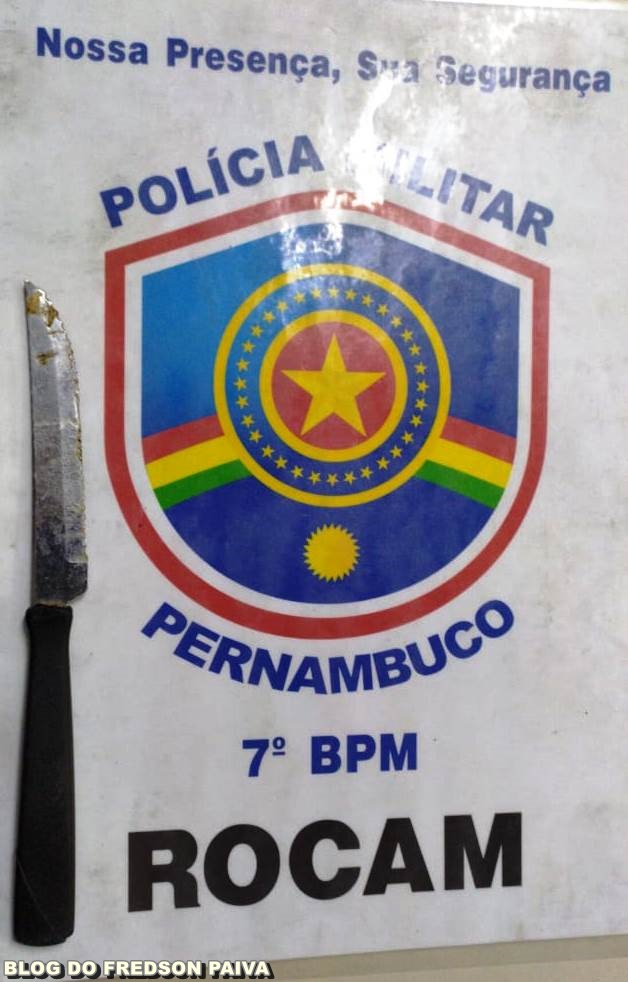 Por volta das 20:07 de segunda-feira 10/08, a equipe da ROCAM, se deslocou ate a Rua Joaquim Angelino Filho, Bairro Alto Paraíso, onde a vitima M. F. S. S, 45 anos, informou que seu filho E. S. S, 28 anos, estava chutando o portão de sua residência, exigindo dinheiro e ameaçando a mesma com uma faca.