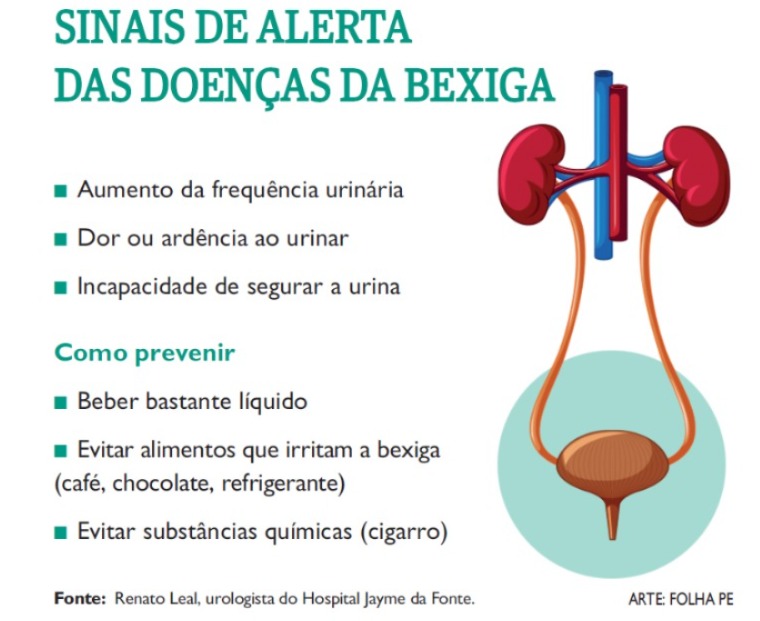 De acordo com o urologista Renato Leal, do Hospital Jayme da Fonte, a manifestação dos sintomas dessas doenças é, geralmente, semelhante. Porém, as principais doenças da bexiga podem variar de acordo com a idade do paciente.